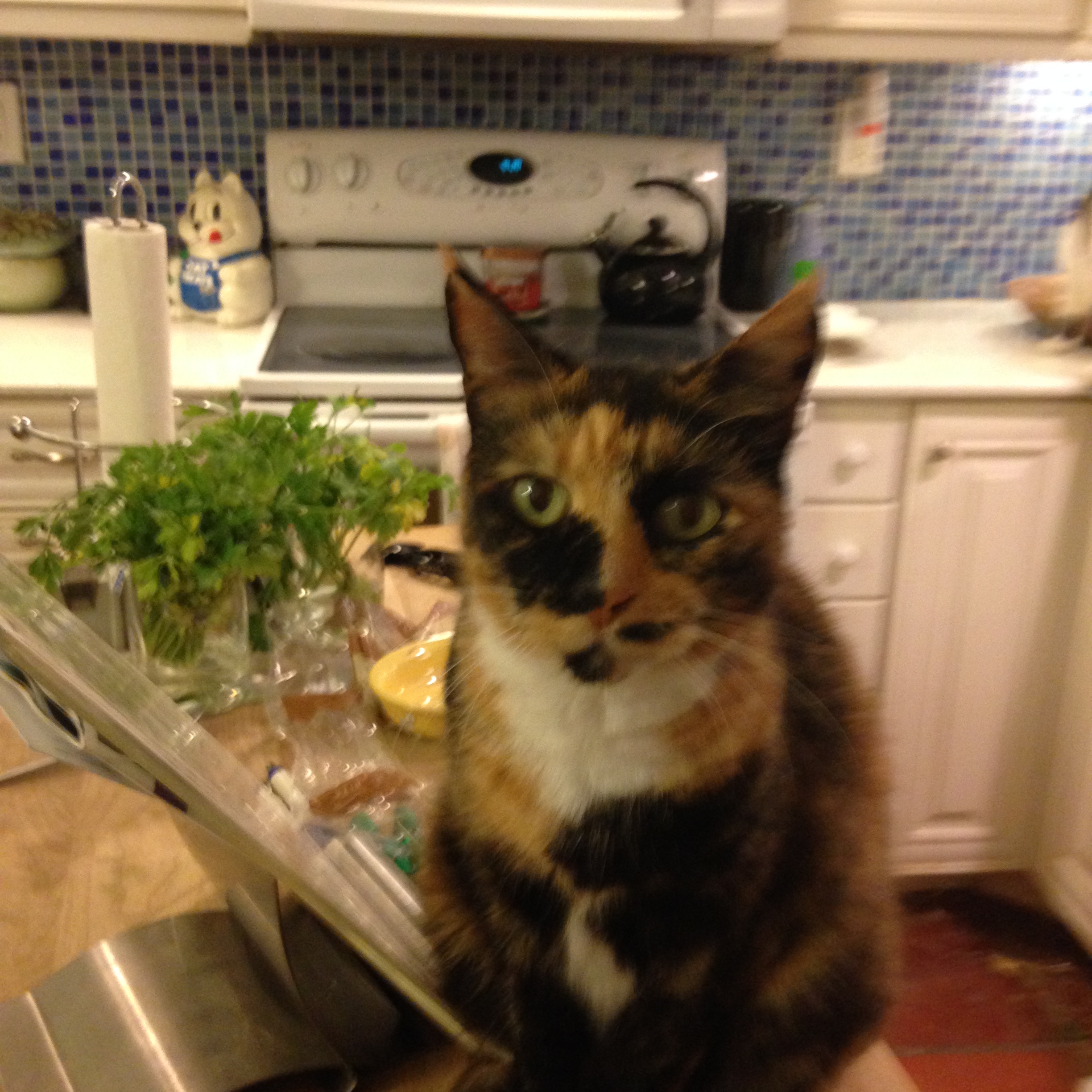 Mellie (her preferred nickname) started loosing weight about a week ago. Her usual zest for eating was different, and then all of a sudden her tummy was distended. I was sure she wasn’t pregnant. Aside from being neutered, she’s 18 years old (93 in human years). We were off to the vet. After an x-ray and exam, he said, “It doesn’t look good.” He suggested I take her home and “just love her.” It’s amazing how quickly she deteriorated and on April 22 she breathed her last.